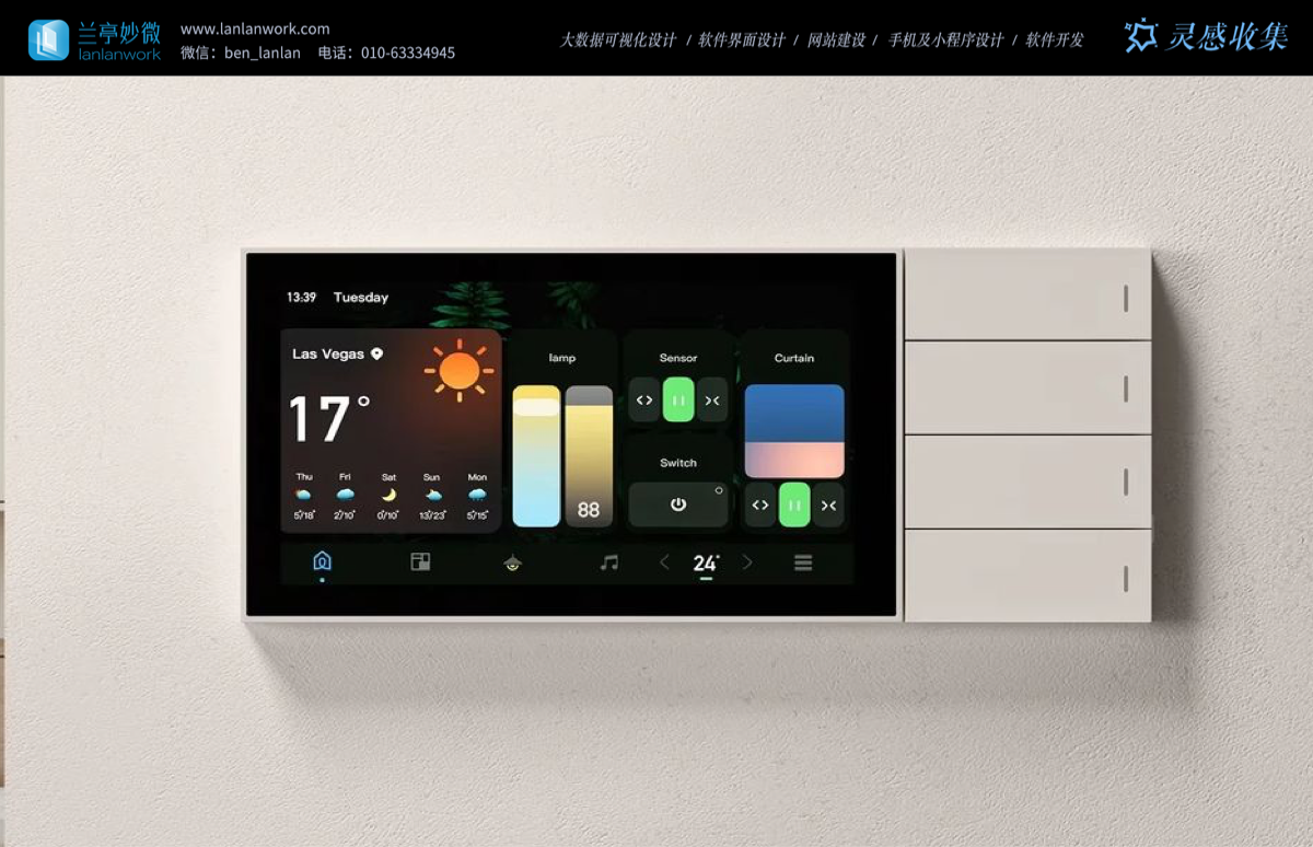 此外,細節處的狀態反饋、“觸屏 + 實體控件” 的多模態交互融合,以及設備自定義拓展空間,均體現對用戶的深度關懷。智能家居 UI 設計應讓 “智能” 成為生活的隱形助手,這組設計從多維度詮釋了 “以用戶為中心,以場景為核心” 的理念,值得行業借鑒。