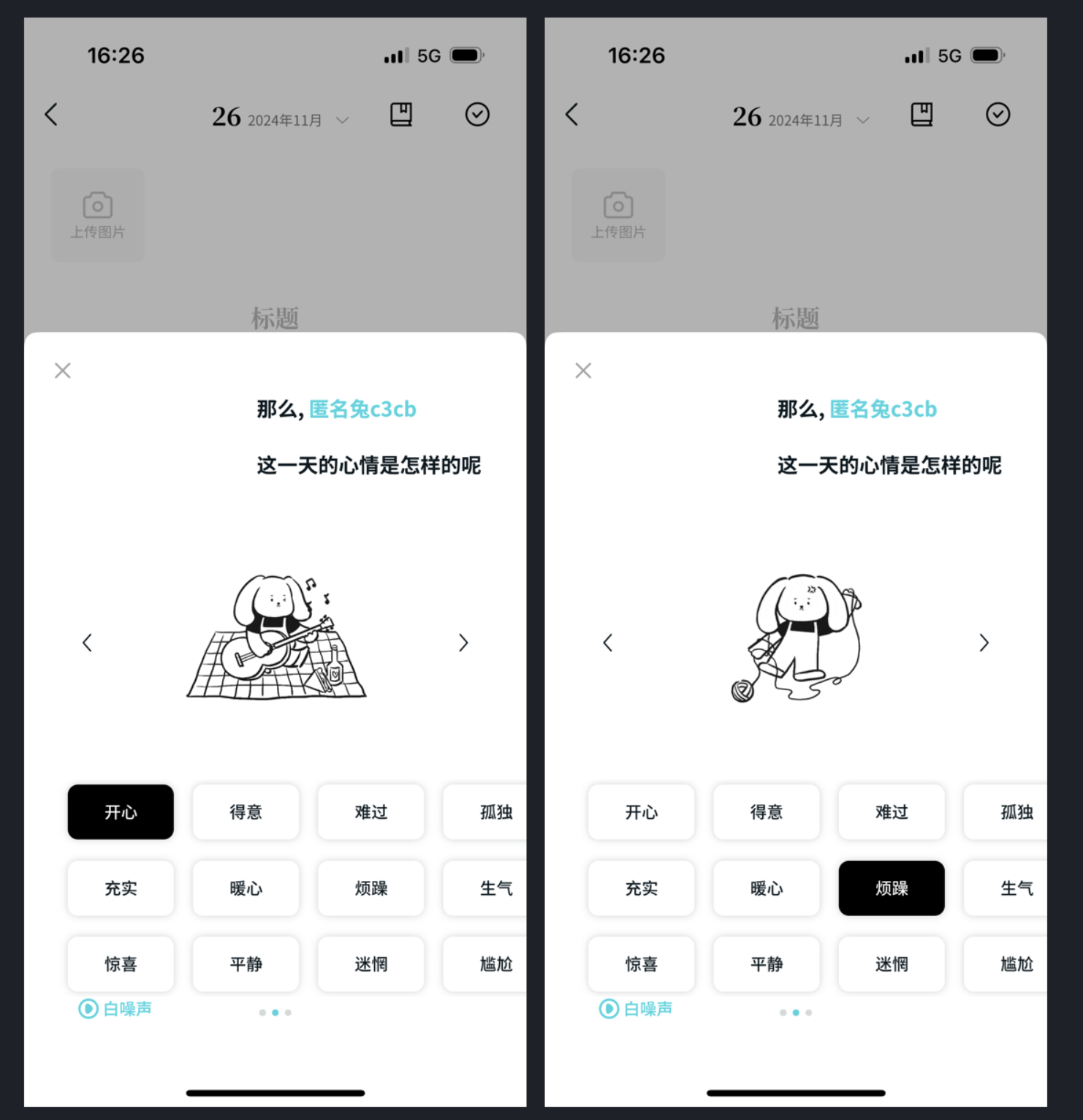 記日記時選 “心情標(biāo)簽”,是很多人記錄生活的習(xí)慣,但常規(guī)設(shè)計(jì)要么是單調(diào)的文字(“開心”“難過”),要么是簡單的表情符號,總少點(diǎn)代入感。