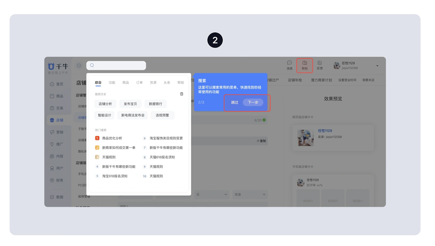 - 例子:千牛 APP 的新手引導(dǎo)會提示 “這里能搜索常用功能”,用戶可以點 “下一步” 繼續(xù)看,也能直接點 “跳過”;Notion 沒有強制引導(dǎo),而是單獨做了 “幫助頁面”,用戶有問題再去查;