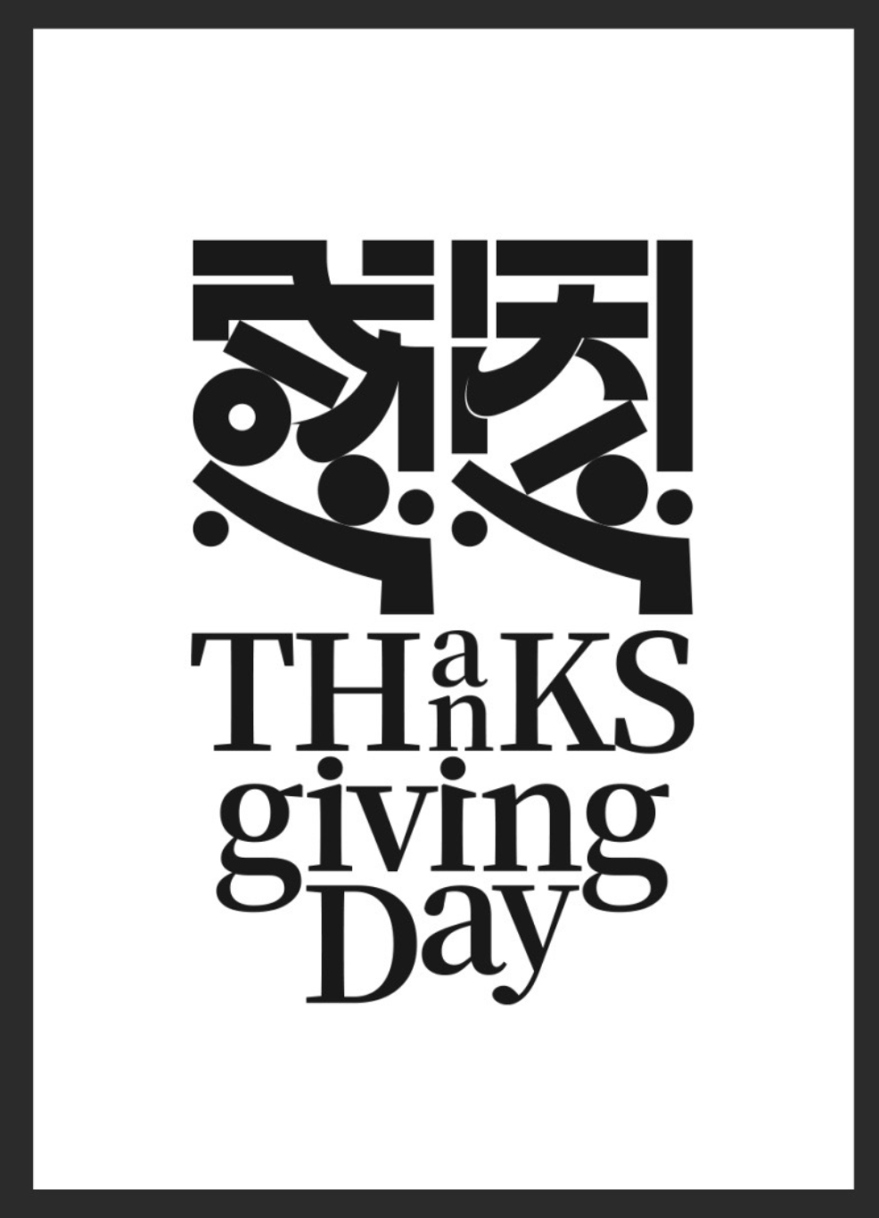 幾何化不代表 “放棄書寫邏輯”。在 “感恩節” 的 “感” 字設計中,將撇筆做 “由細到粗” 的過渡,模擬手寫時 “下筆重、收筆輕” 的力道;在 “恩” 字設計中,將內部的撇筆與豎筆做 “連筆重組”,貼合手寫時 “筆畫銜接的慣性”。這種 “幾何結構 + 書寫屬性” 的疊加,讓文字既有幾何的規整,又有手寫的流暢。