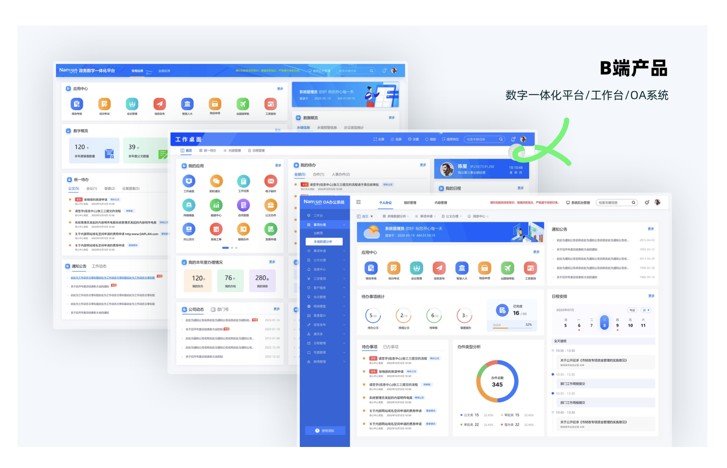• B 端 UI 設(shè)計(jì):全稱(chēng) “To Business”,服務(wù)于企業(yè)或組織用戶,核心是滿足商業(yè)流程需求。比如 OA 辦公系統(tǒng)、財(cái)務(wù)軟件、數(shù)據(jù)監(jiān)管平臺(tái)等,設(shè)計(jì)目標(biāo)是幫企業(yè)優(yōu)化流程、降低成本、提升生產(chǎn)力。