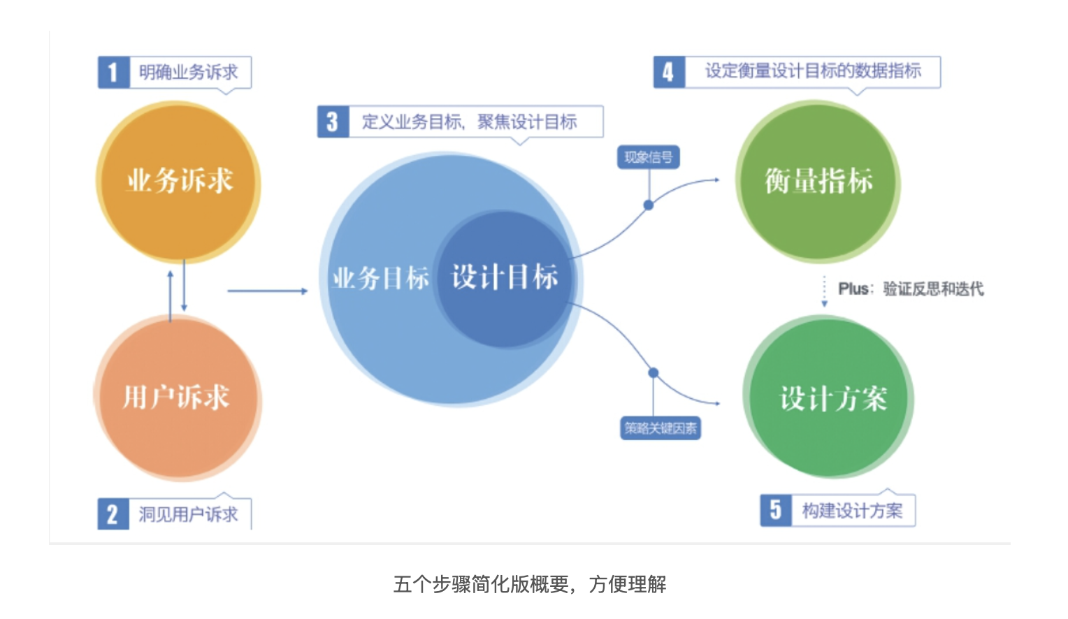 如果說設計觀是 “道”,那么五導家方法論就是 B 端設計的核心 “術”。這一方法論源于阿里 1688UED 團隊的實戰(zhàn)提煉,為設計師提供了一套系統(tǒng)化的思考路徑,從 “被動接單” 轉向 “主動解決問題”。其核心邏輯以目標用戶為源頭,包含六步閉環(huán)(原書五步基礎上補充 “驗證迭代”):