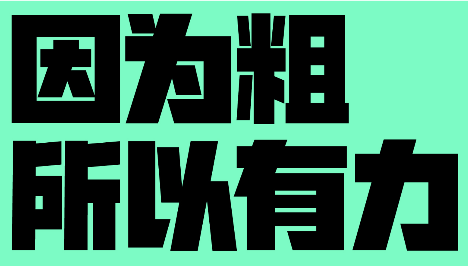 在平面設(shè)計(jì)、品牌宣傳、活動(dòng)海報(bào)等場(chǎng)景中,大標(biāo)題往往是視覺(jué)焦點(diǎn),而一款自帶力量感的粗黑字體,能瞬間抓住觀眾眼球,強(qiáng)化信息傳遞的沖擊力。筆畫(huà)厚重、結(jié)構(gòu)扎實(shí)的粗黑字體,不僅能清晰劃分畫(huà)面層次,還能通過(guò)視覺(jué)重量感傳遞自信、堅(jiān)定的品牌調(diào)性,甚至放大后可作為圖形元素豐富設(shè)計(jì)表達(dá)。